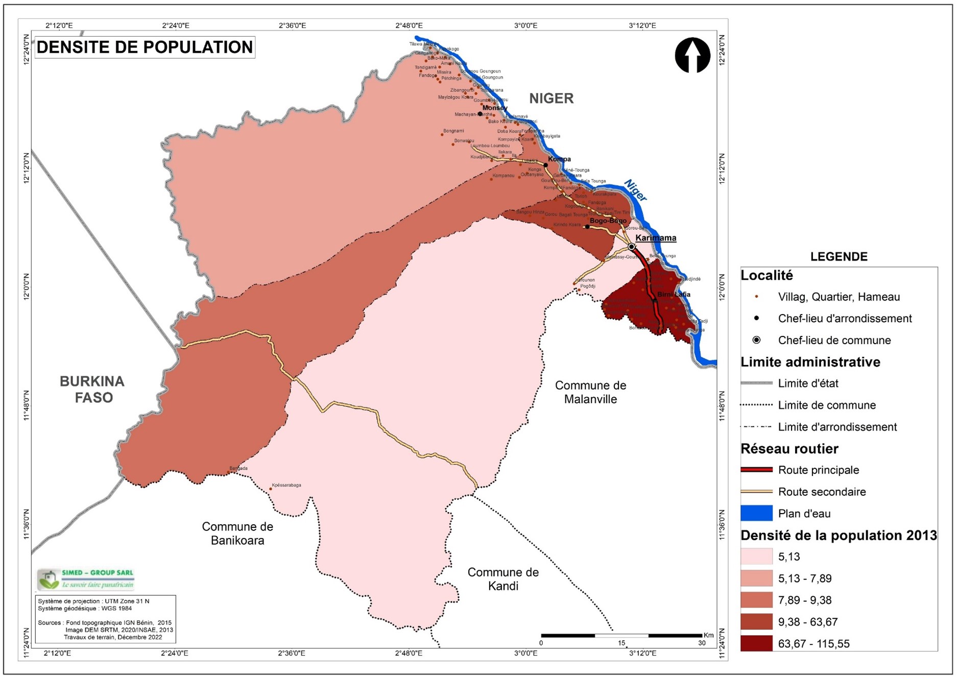 Figure 2 :Densité de la population dans la Commune de Karimama